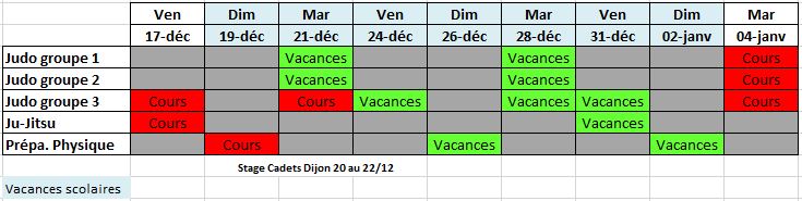Planning des activités vacances de Noël 2021